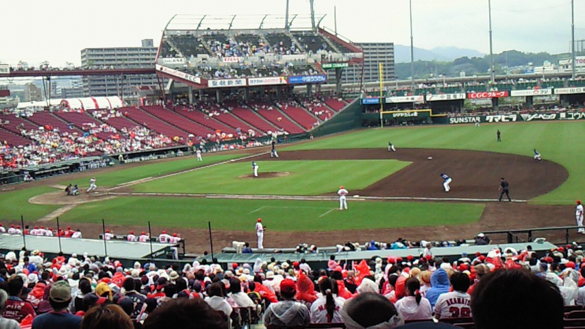 昨日も負けてたし、「勝ちグセ。じゃなくて負けグセ。なんじゃない?」と軽く小馬鹿にしながら、期待せずあいにくの空模様の中マツダスタジアムへ。